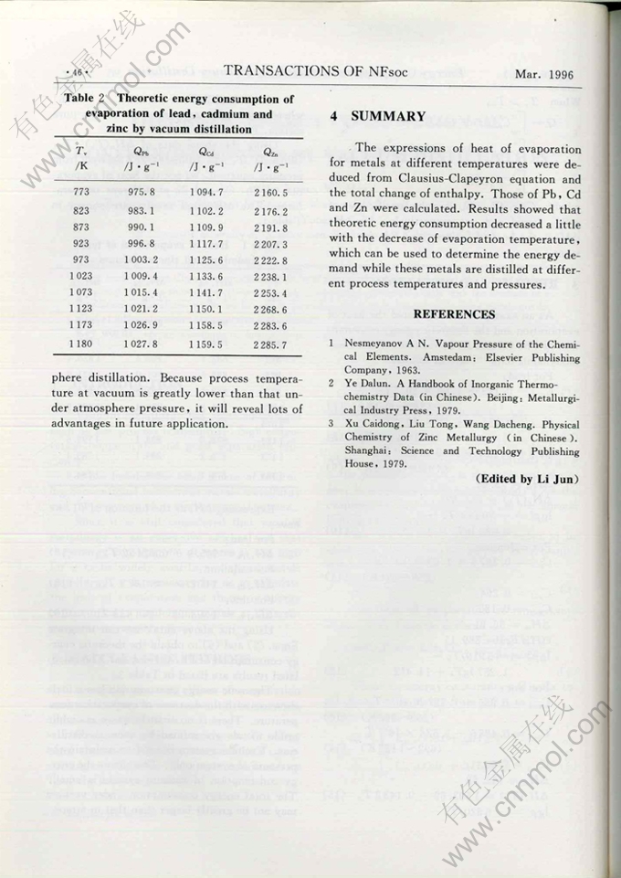 THEORETIC ENERGY CONSUMPTION OF NONFERROUS METALS BY VACUUM DISTILLATION