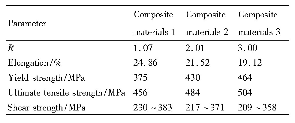 表2 复合材料的力学性能Table 2 Mechanical properties of composite panels[32]