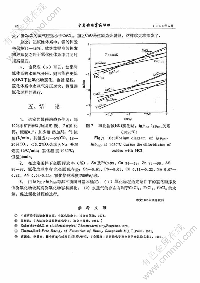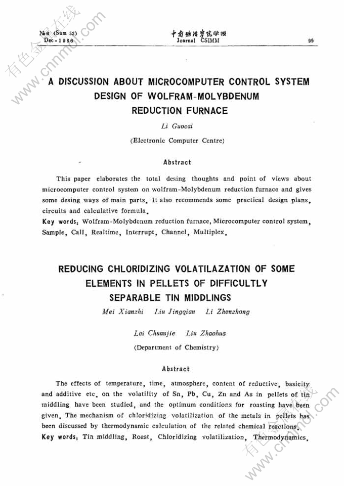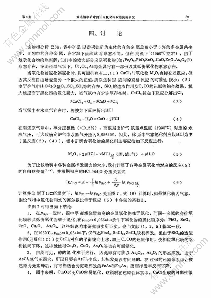 Key words:Tin middling; Roast; Chloridizing volatilization; Thermodynamics