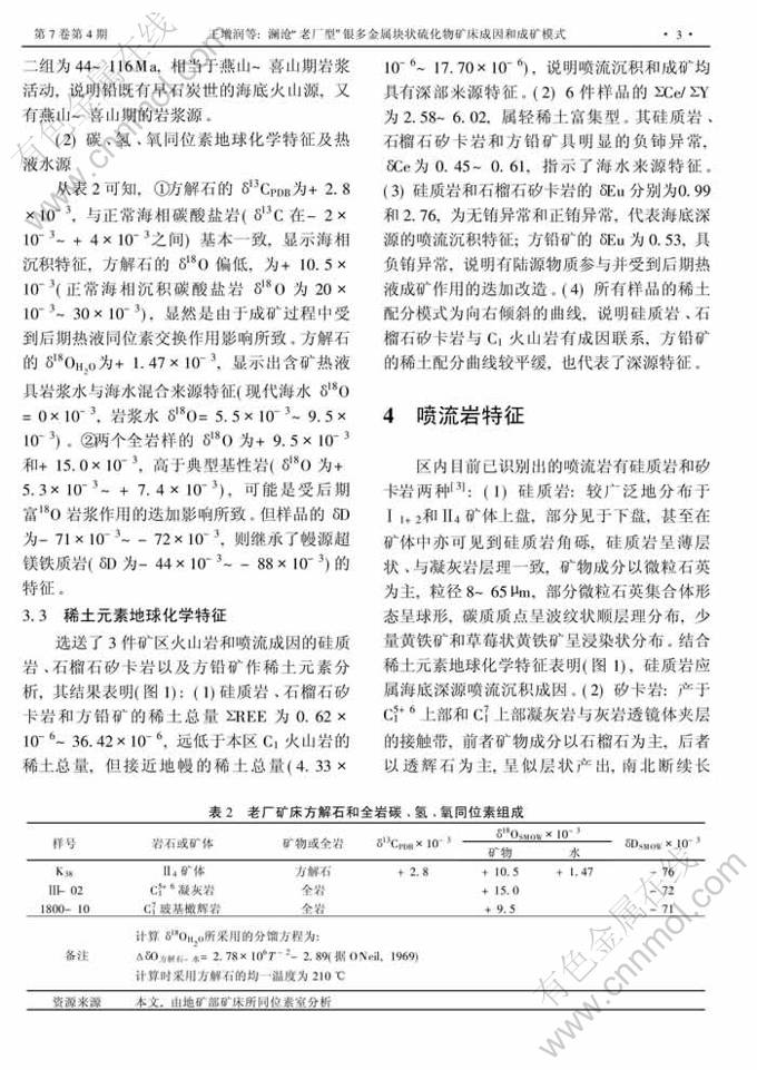 澜沧“老厂型”银多金属块状硫化物 矿床成因和成矿模式