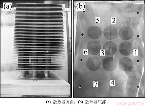 而试验过程中,由于测量时热电偶需要埋入散热器台面1.5 mm,故散热器的实际热阻须考虑此1.5 mm的导热热阻,其计算公式为