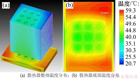 数值模拟中,散热器的台面最高温度可以直观显示,散热器的热阻计算公式为