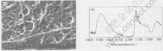 Fig.2 SEM micrograph(a) and FT- IR spectrum(b) of eggshell membrane