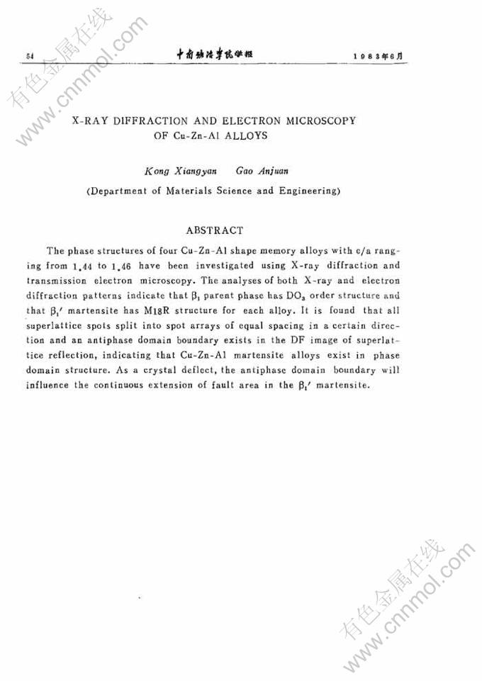 Cu-Zn-Al合金的X射线和电子显微术的研究