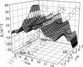 图6 铝液中间垂直磁场Bz分布(SG2)