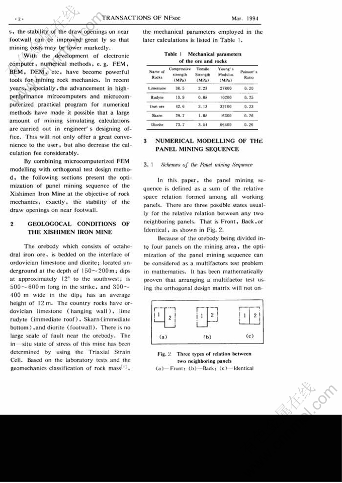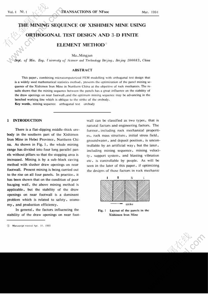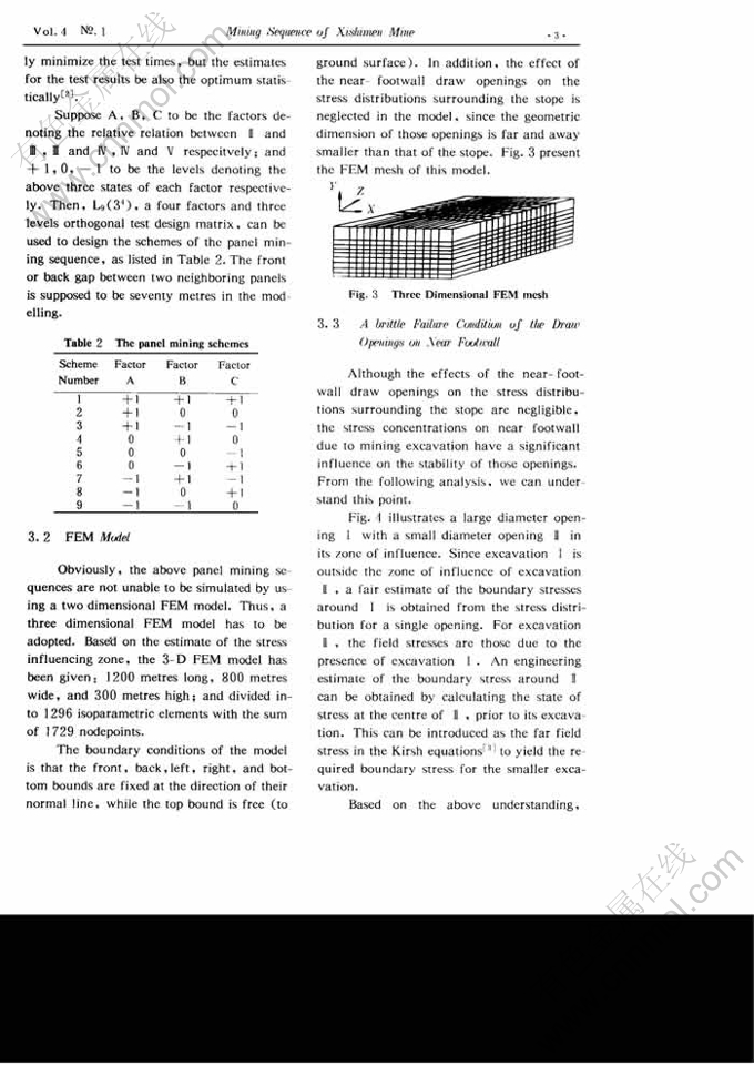 THE MINING SEQUENCE OF XISHIMEN MINE USING ORTHOGONAL TEST DESIGN AND 3-D FINITE ELEMENT METHOD