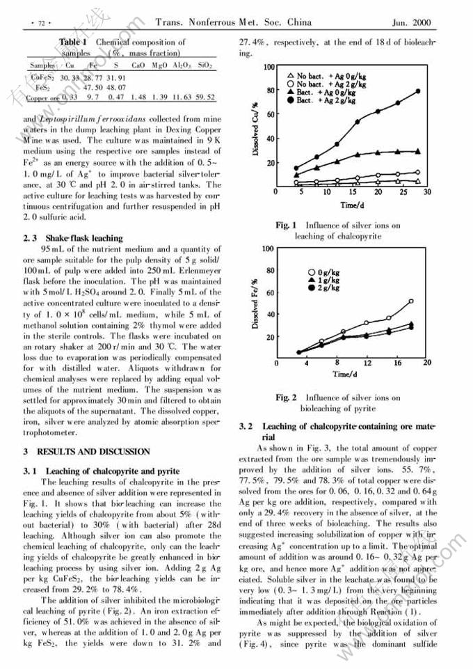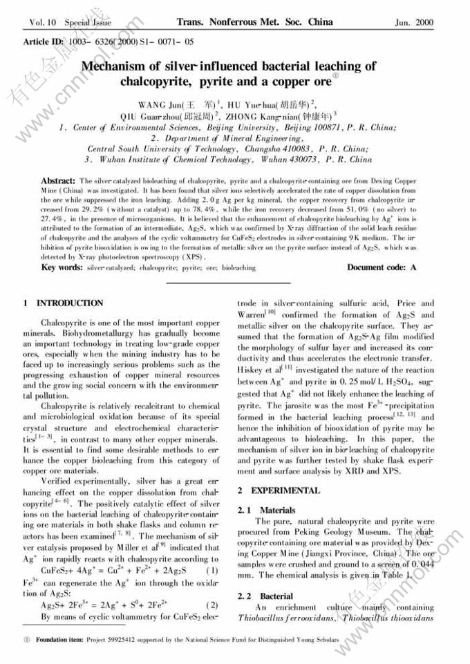 Key words:silver-catalyzed; chalcopyrite; pyrite; ore; bioleaching