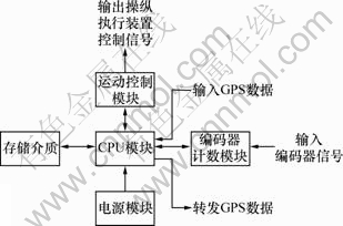 归航控制器是归航控制系统的核心部件,由CPU模块、运动控制模块、编码器计数模块、电源模块和固态盘组成(见图3)。其结构采用堆栈式连接:模块之间通过上层的针和下层的孔相互咬合连接,不需要背板和插槽,具有极好的抗震性能。归航控制器对操纵执行装置的控制方式有以下3种[6-8]:串口命令方式、模拟量电压方式、高频脉冲信号方式。串口命令方式为控制器直接输出串口命令到驱动器控制电机的运动,由于串口的数据传输有时会出现延迟,不适合于对实时性要求很高的系统。模拟量电压方式为控制器输出模拟量电压控制电机的速度环,编码器将电机位置信息反馈给控制器,控制器侦测到电机即将到位后,再输出反向电压驱动电机作减速运动直到止动。在这种控制方式下电机的力矩、速度和位置环控制需要控制器作复杂的运算,且误差大,精度低。高频脉冲信号方式为控制器输出两路信号:一路为高频脉冲信号,一路为方向信号。脉冲信号的频率控制电机的转速,脉冲的个数控制电机的转动位置,方向信号控制电机的转动方向。通过比较编码器反馈的脉冲数和控制器发出的脉冲数还可以验证控制的正确性和精确度。可见,高频脉冲信号控制方式相比其他2种方式更加简便精确且实时性更强,故本研究所述归航控制器选用了该方式。