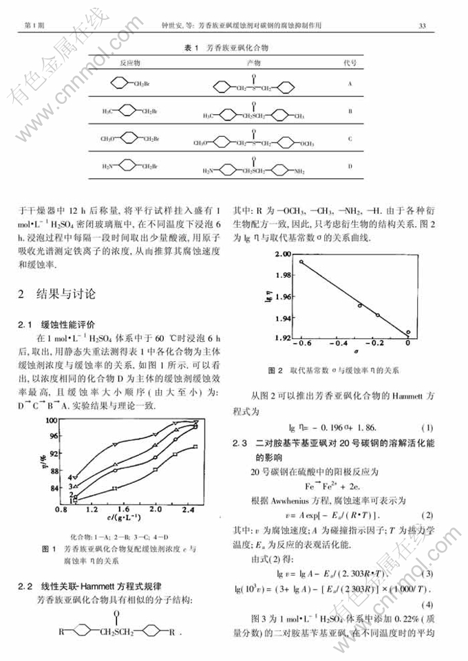 芳香族亚砜缓蚀剂对碳钢的腐蚀抑制作用