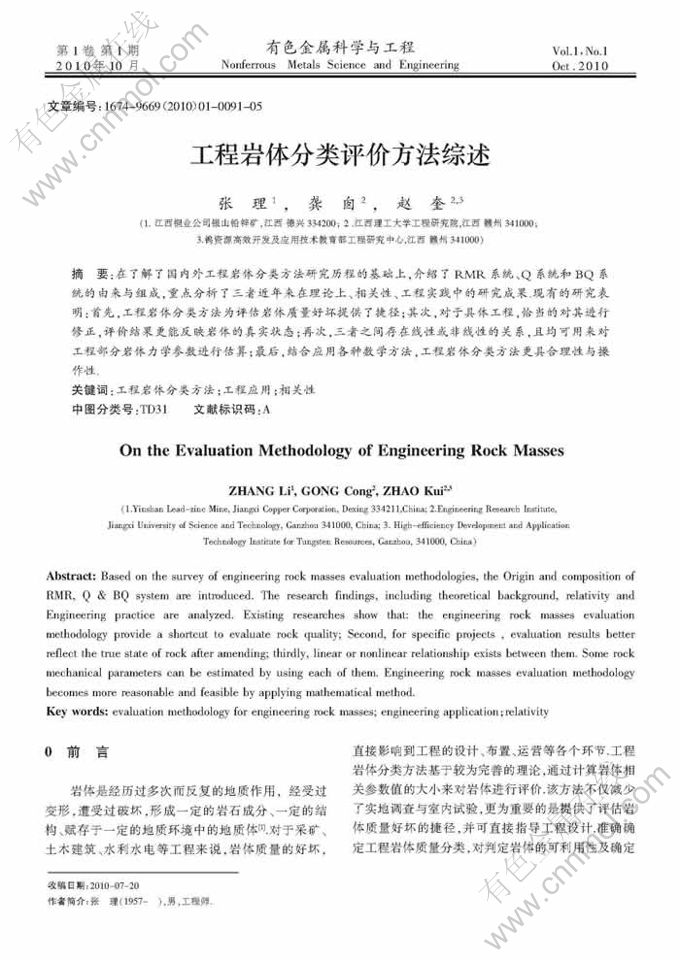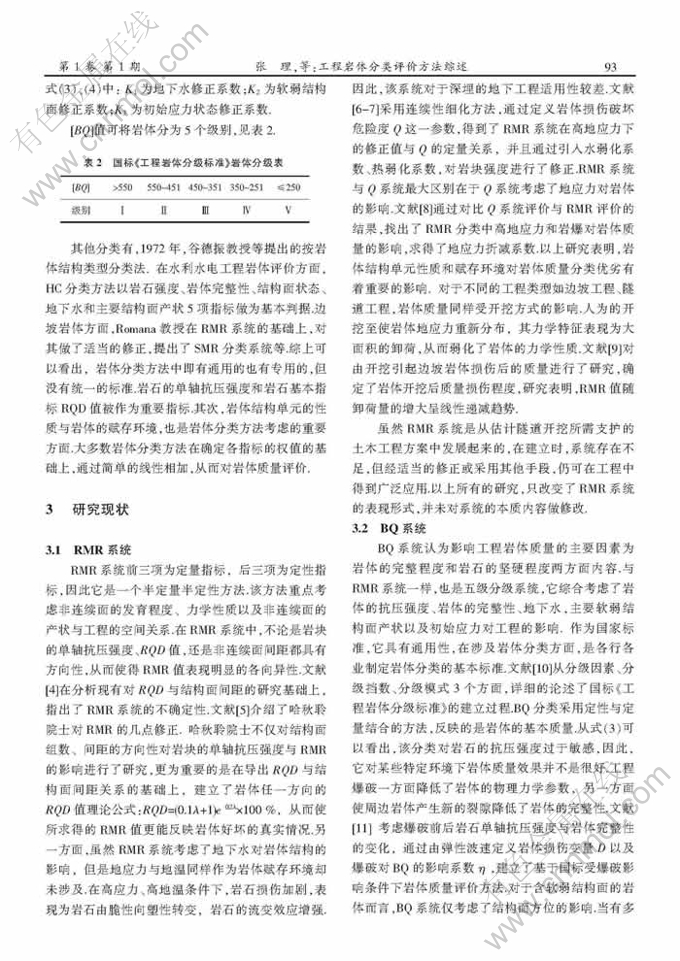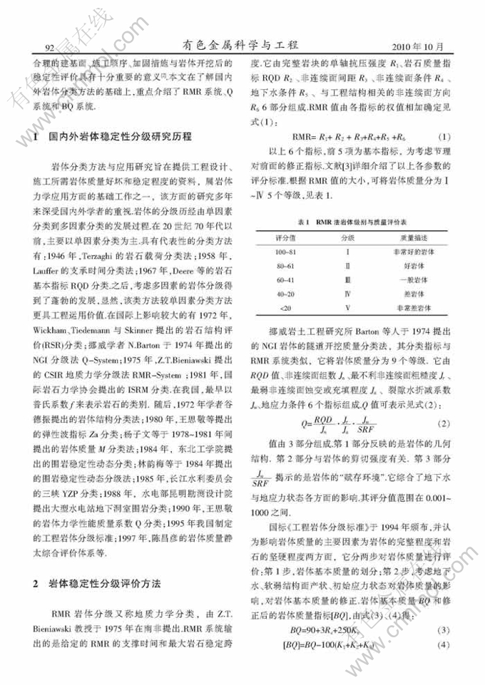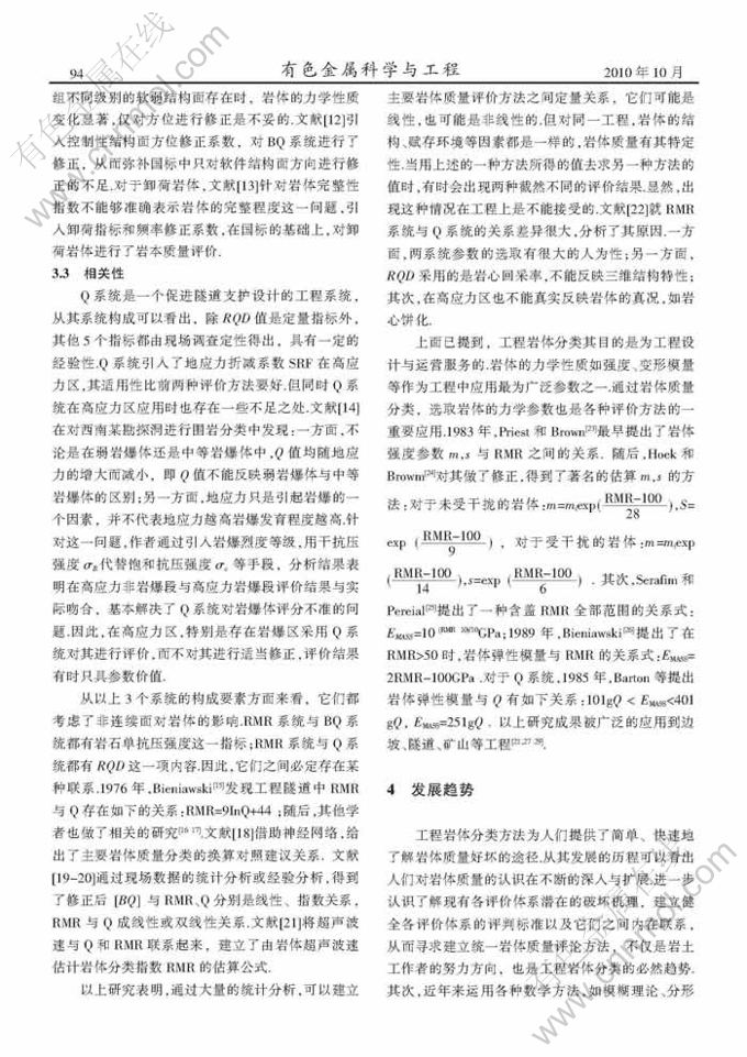关键词:工程岩体分类方法;工程应用;相关性