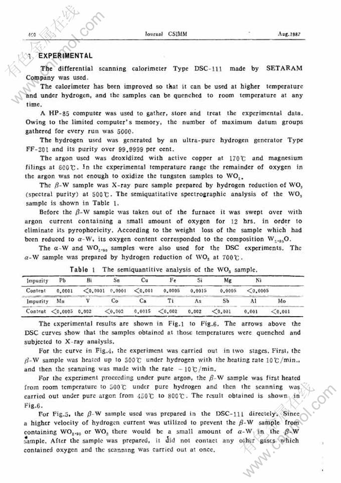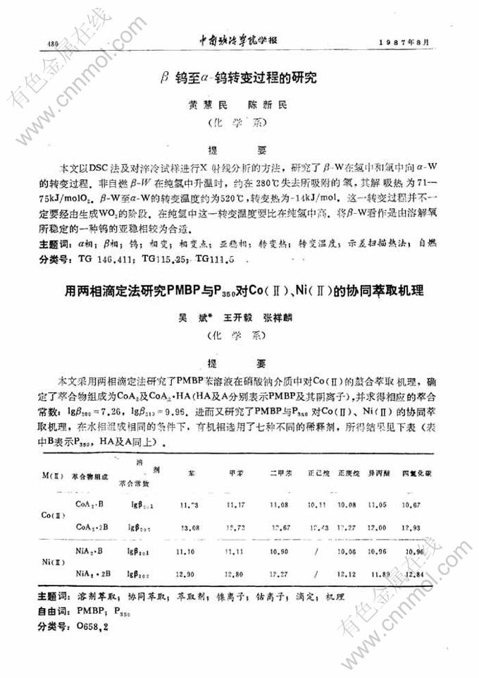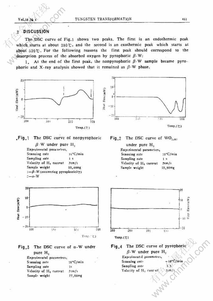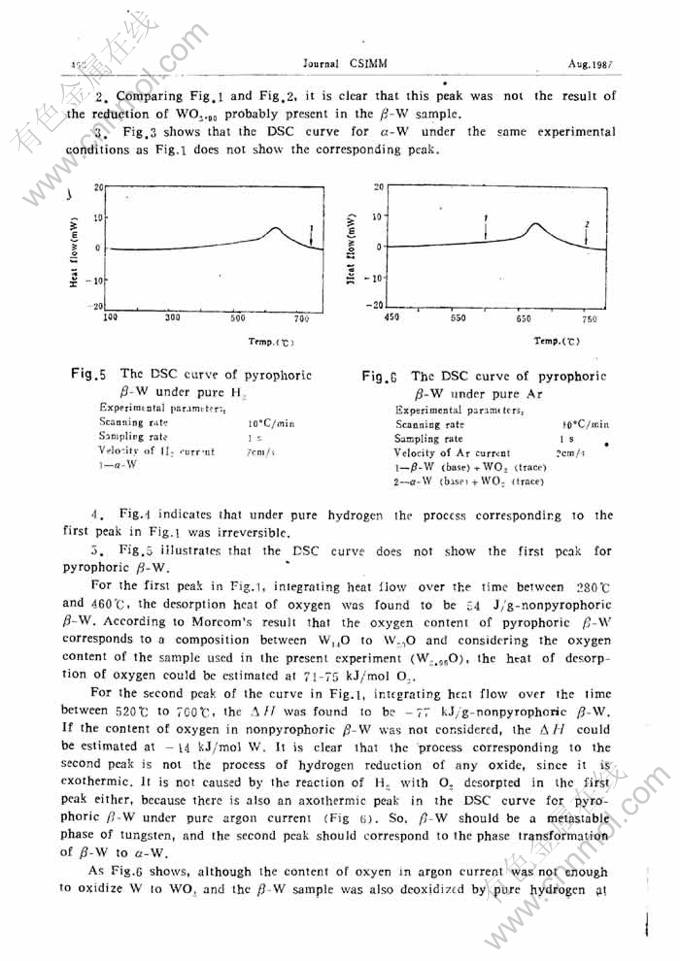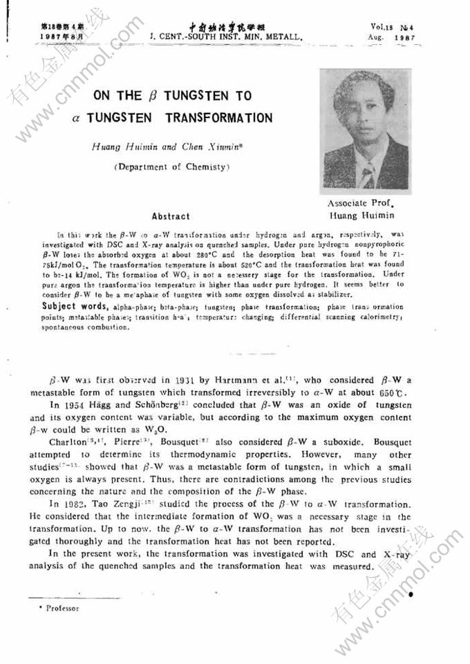 关键词:α相; β相; 钨; 相变; 相变点; 亚稳相; 转变热; 转变温度; 示差扫描热法; 自燃