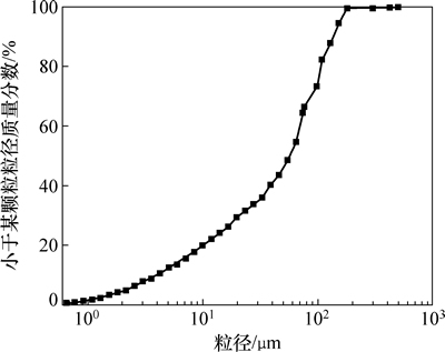 4) 全尾砂取自该矿山选矿厂,烘干后备用。使用激光粒度仪(LMS-30型)对尾砂的粒级组成进行分析,结果如图1所示。