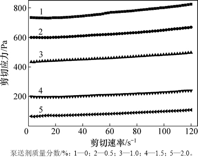 Fig. 2  Change of paste rheology curve by varing mass fraction of pumping agent