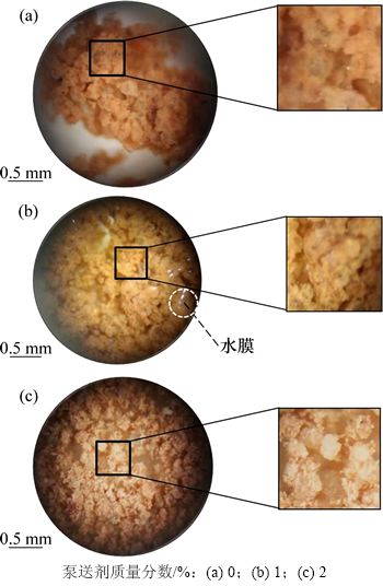 为了验证泵送剂对于絮团结构的破坏作用,使用Macroscope便携式显微镜(45倍)观察了添加泵送剂前后絮团结构的变化,如图6所示。