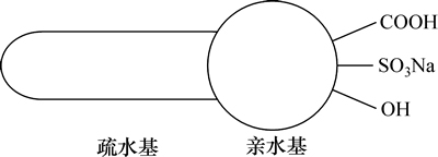 试验使用的泵送剂C主要成分为高效减水剂,为阴离子表面活性剂,其分子结构基由亲油基与亲水基2部分组成,如图7所示。