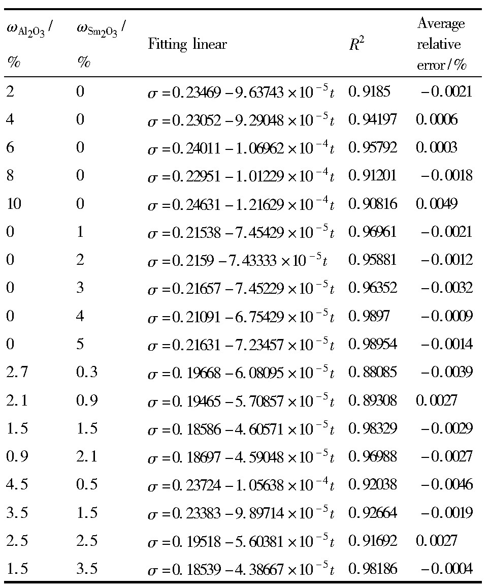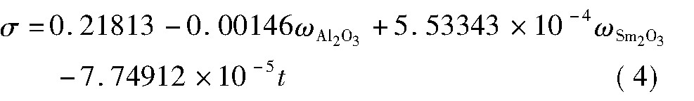 上述回归方程适用的范围为:ωAl2O3为0%~10%, ωSm2O3为0%~5%, t为905~1055℃。