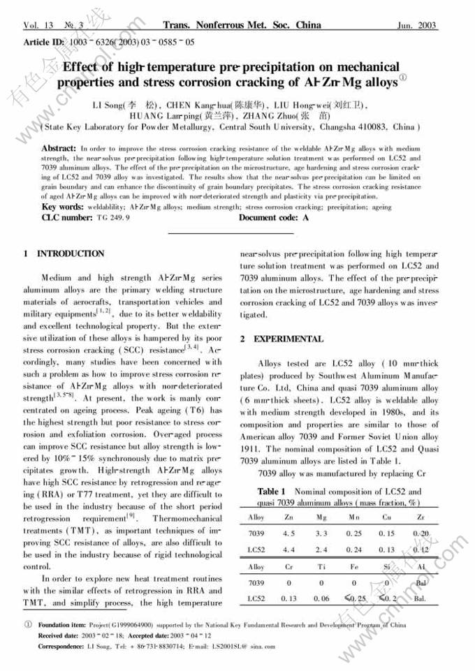 来源期刊:中国有色金属学报(英文版)2003年第3期