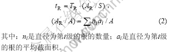 考虑根的抗拉强度是随直径变化的,所以,根的平均抗拉强度可以由下式决定: