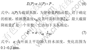 假设植被截留降雨量E同降雨量P满足如下函数关系,