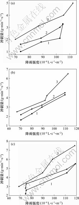 b. 试验时,分4级雨量控制,每次冲刷降雨强度分4级,每级降雨强度一定,历时15 min;收集每级冲刷水量。