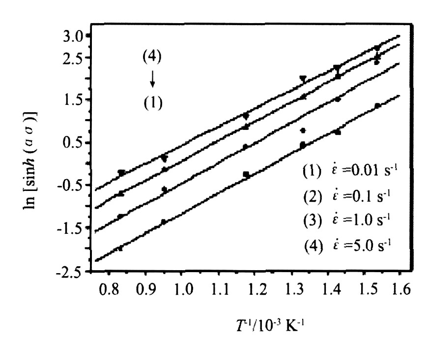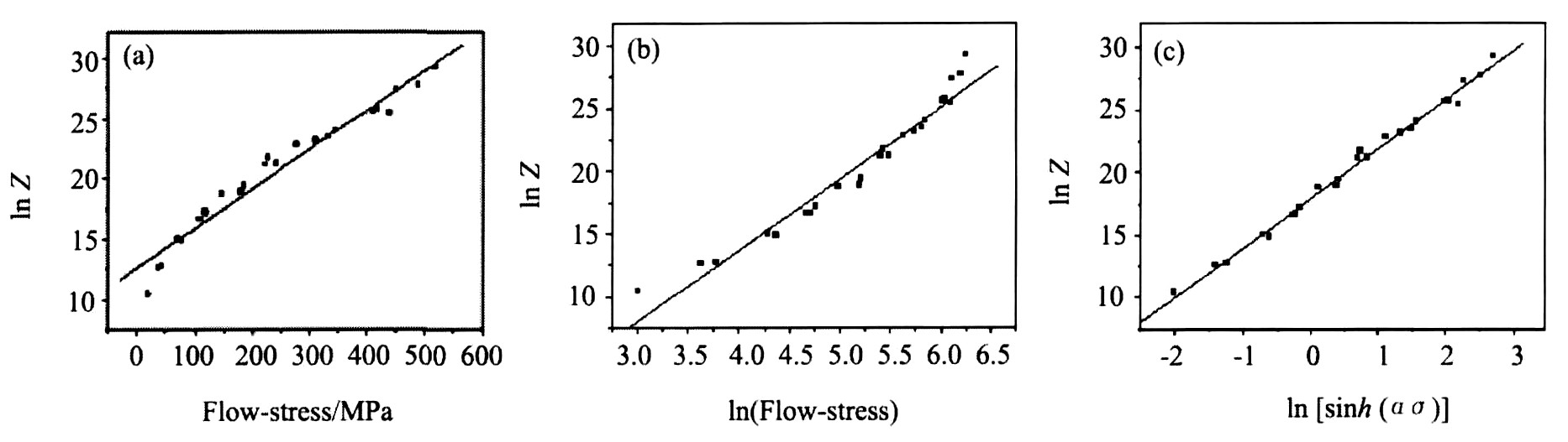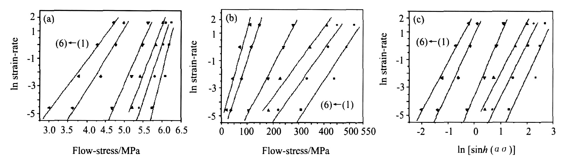 ln ˙ ε = A ′ 1 + n 1 ln σ ? ? ? ( 1 0 ) ln ˙ ε = A ′ 2 + β σ ? ? ? ( 1 1 ) ln ˙ ε = A ′ + n ln [ sin h ( α σ ) ] ? ? ? ( 1 2 )