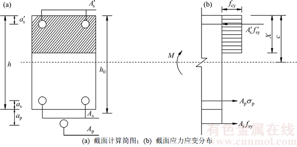 为受压区非预应力筋截面面积;b为矩形截面宽度;as和ap分别为受拉区非预应力筋合力点和预应力筋合力点至截面边缘的距离;