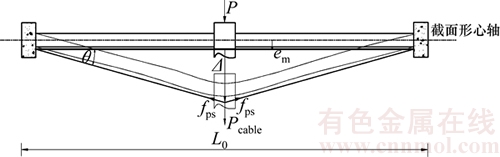 为跨中竖向位移;em为体外预应力筋偏心距;L0为相邻锚具的距离)。根据图11中的静力平衡条件可得