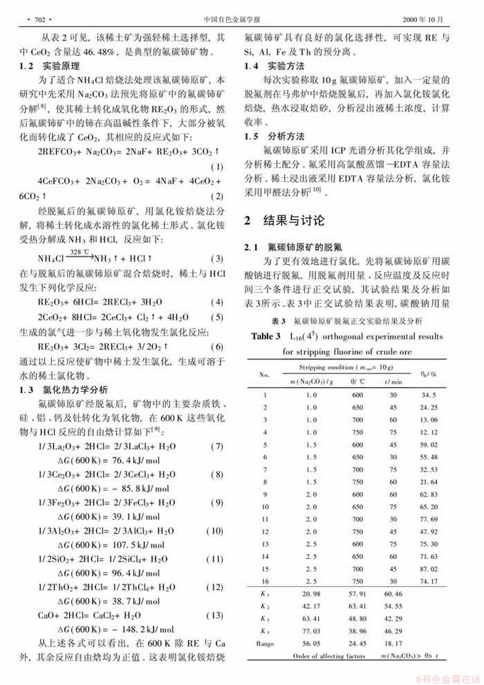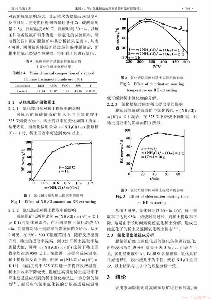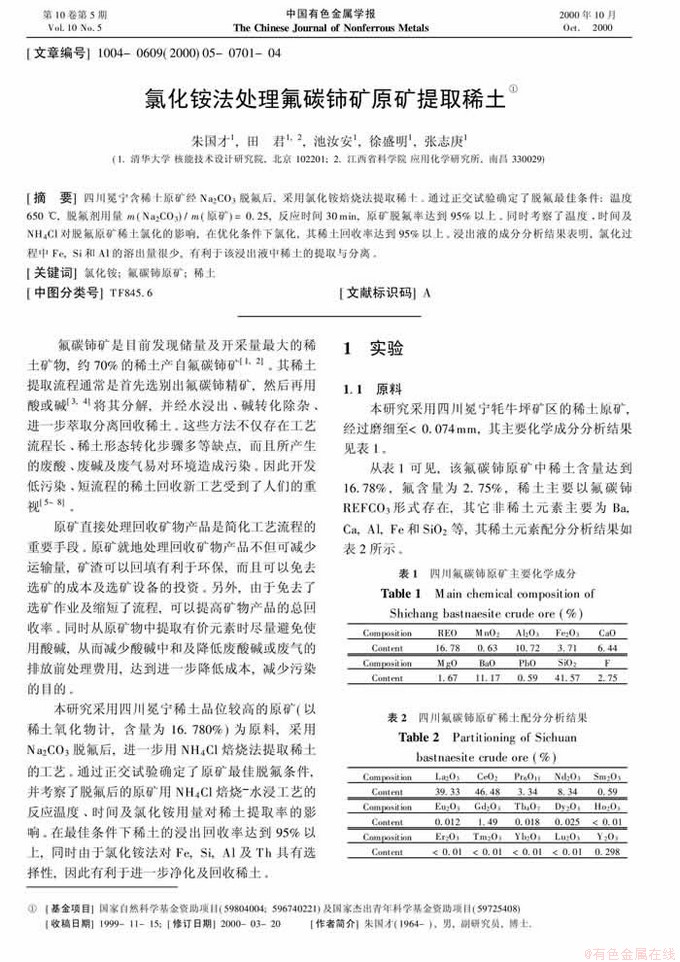 关键词:氯化铵; 氟碳铈原矿; 稀土
