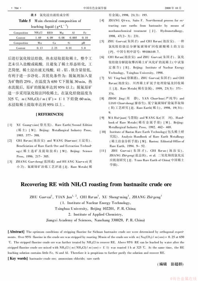Key words:bastnasite crude ore; ammonium chloride; rare earth