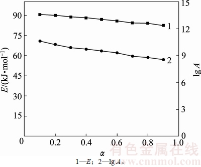 Fig. 5 E and lg A of sulfide samples calculated by FWO method
