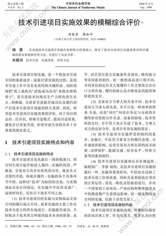 摘 要:在论述技术引进项目实施内容和特点的基础上,探讨了技术引进项目实施效果评价应遵循的基本原则和评价方法,并进行了实证分析。