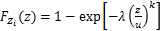 式中:Zi为第i个单元的强度。FABER等[4]进行钢丝静力试验时发现钢丝强度服从Weibull分布