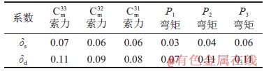 基于图7所示的动力时程曲线,将静力和动力效应最大值与原始效应值进行对比,得到拉索失效引起的静力与动力增大系数如表1所示。表1中,δs与δd分别表示