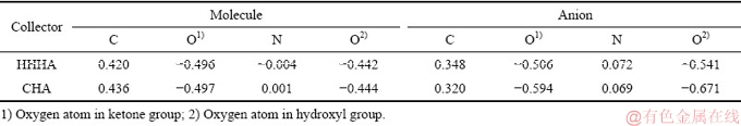 表1 DIHHA和CHA分子及离子中官能团原子的所带电荷量