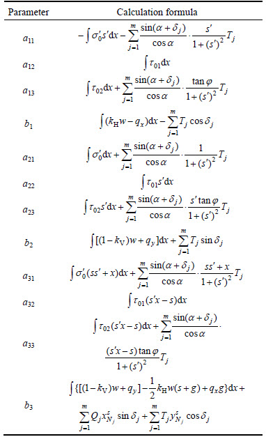 where aij and bi are the calculation parameters, and their formulas are shown in Table 1.