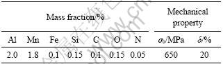Table 1 Chemical composition and mechanical property of LF6 Al alloy