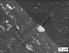 Fig.3 Microstructure showing particle exfoliated from stirring head after wearing
