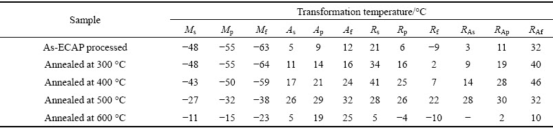 Table 1 Transformation temperatures of samples as-ECAP processed and annealed at different temperatures