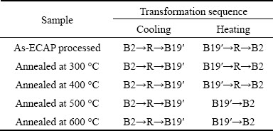 Table 2 Transformation sequences of samples as-ECAP processed and annealed at different temperatures