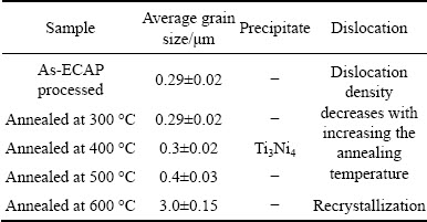 Table 3 Microstructure evolution of differently treated Ti49.2Ni50.8 alloy