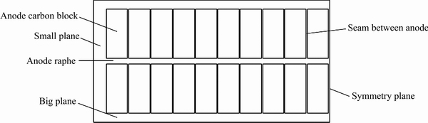 Fig. 1 Computation domain of aluminum electrolytic cell