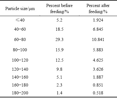 Table 5 Distribution of particle size after feeding