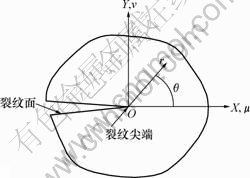 图1 二维裂纹前缘任意点的局部坐标(法平面)和位移场