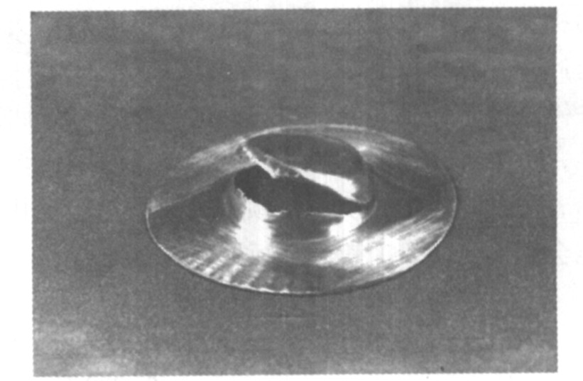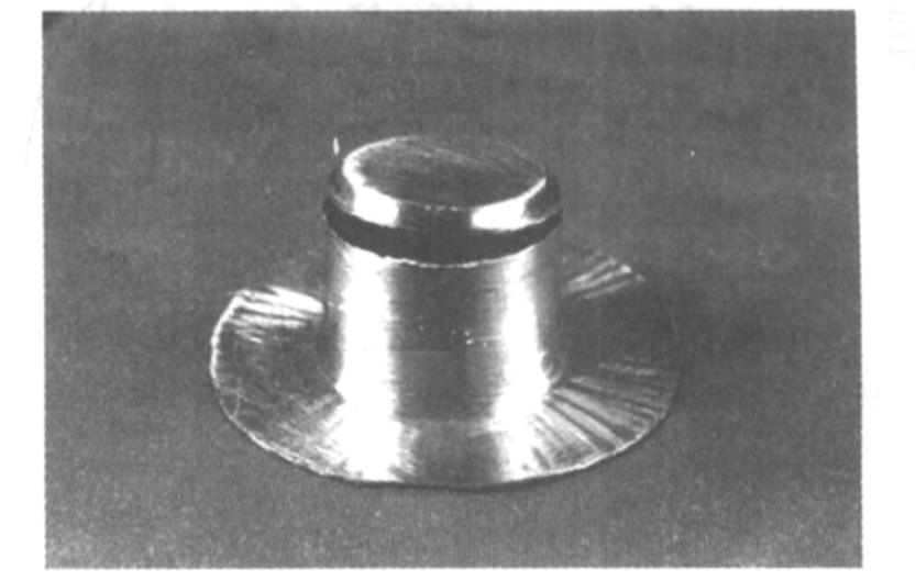 为此, 在50~240 ℃的温度范围内分别对冲头和凹模加热, 以考察不同成形温度下的冲头温度的变动对热拉深成形的影响。 试验结果表明: 将冲头的温度控制在50~90 ℃的范围内, 拉深过程均能顺利进行。 当冲头温度低于50 ℃, 试件很快在凹模入口处发生脆性断裂(见图7); 而当冲头温度高于90 ℃时, 试件在拉进一定深度在冲头圆角处后发生断裂(见图8)。