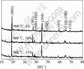 Fig.5 XRD patterns of Li(Ni3/8Co3/8Mn2/8)O2 synthesized at 900 ℃ for different times
