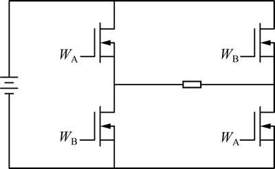 发射系统由发射桥路构成,由于基坑深度一般在50 m以内,发射系统最大只需要发射几十伏电压。设计发射桥路时采用MOSFET器件IRF3205,其通态电阻仅为8 mΩ,漏极持续电流可达110 A,而且开关速度快、效率高,满足发射系统要求[11]。发射桥路如图3所示,控制信号WA和WB控制2组IRF3205轮流导通,从而在负载上产生双极性方波。另外,为了防止2组器件同时导通,WA和WB之间应加上1 μs的死区时间。发射系统发射幅值为12 V、频率为1 Hz的双极性方波。