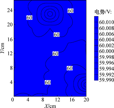 因此,可由电势φ求得电流密度J,且电流密度J和电势等位线处处正交[10]。