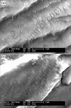 Fig.7 Fractographs of fatigue fracture samples at different stress amplitudes by high magnification: (a) 285 MPa; (b) 400 MPa