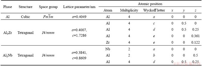 Table 1 Crystal structure, lattice parameters and atomic positions of Al, Al3Zr and Al3Nb phases [33]