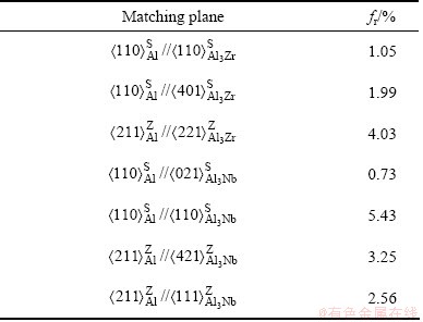 Table 2 Interatomic spacing misfit, fr, along CP matching rows between Al and Al3Zr as well as Al3Nb